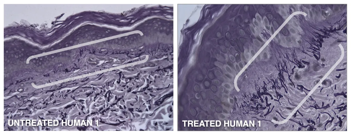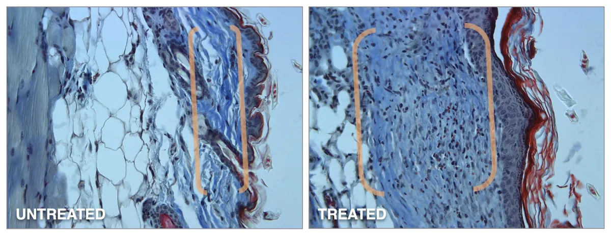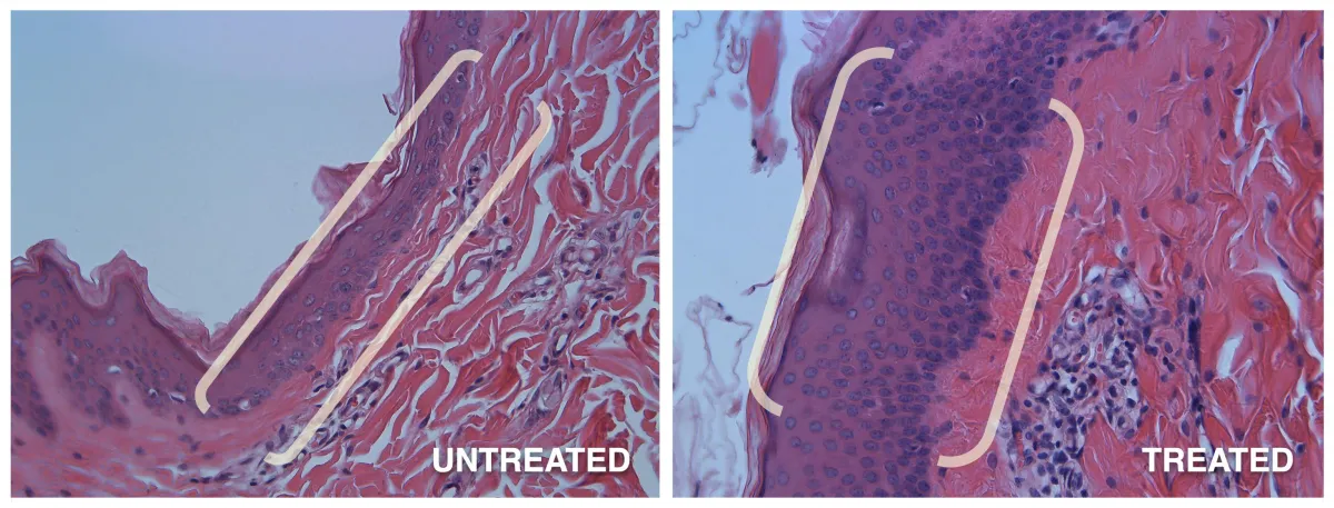 In a 60-day, daily applied study of the #1 pharmaceutical non-drug skincare line, epidermal thickness minimally increased by only 27%.