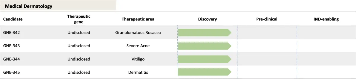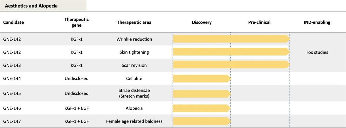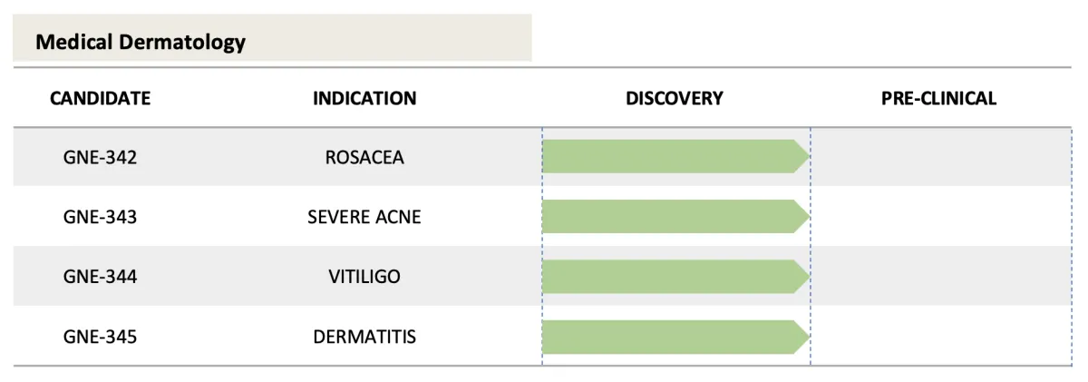 Submit IND with multiple indications: wrinkles, skin tightening, and scar revision (GNE-142, GNE-143)